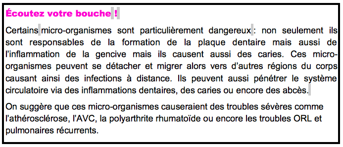 Et les chercheurs de conclure, « Nos découvertes suggèrent que la cavité buccale pourrait servir de réservoir à des bactéries potentiellement pathogènes, capables d’exacerber les maladies intestinales », ils soulignent également que l’usage prolongé d’antibiotiques pourrait perturber l’équilibre du microbiote intestinal, favorisant la colonisation de l’intestin par des bactéries buccales potentiellement pathogènes.